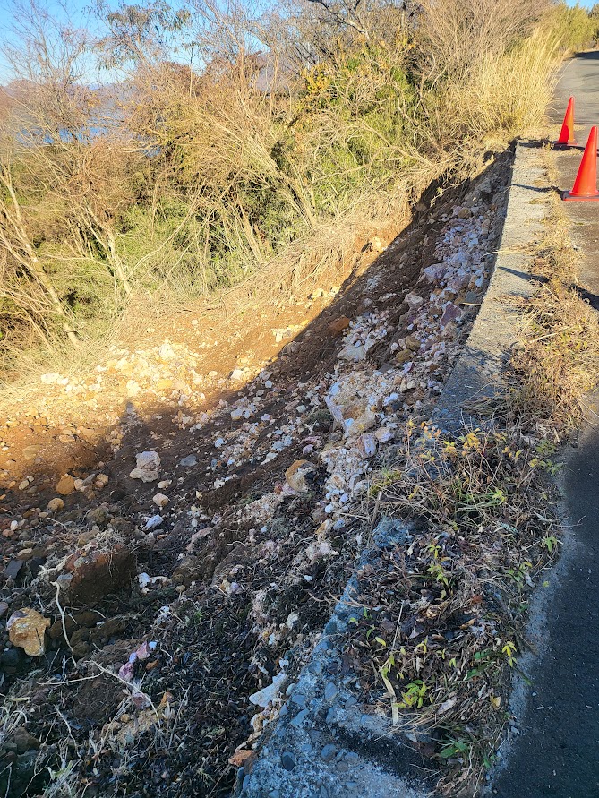 神奈川県箱根町にあります箱根くらかけゴルフ場様よりご依頼いただきました、土砂崩れの復旧工事になります。ゴルフ場進入路にて大雨の影響で土砂崩れが発生。危険を伴うということで現地調査をさせていただきました。コストや色々な工法を考慮した結果、前田工繊産資マキセル工法を提案させていただきました。こちらは現状の地理を生かし、マキセルという材料を用いて、土砂崩れの斜面を形成、復旧することが可能です。排水機能もついておりますので、非常に合理的かつコストも抑えられる工法です。こういった案件ございましたら、お気軽にお問合せください。